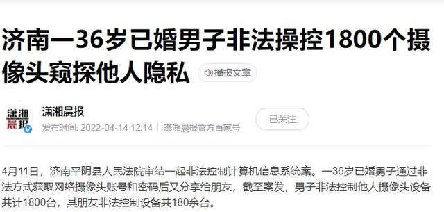 济南平阴:男子控制1800个摄像头偷窥 获利40元 被判刑